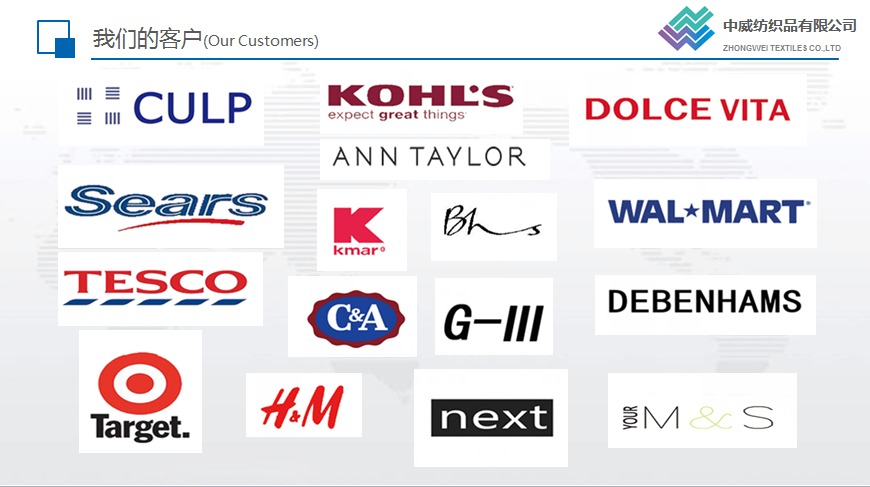 中威紡織主要經營麂皮類家紡及各類服裝面里料,并可根據客戶要求研發(fā)、生產及深加工各類面料。公司產品遠銷美國、墨西哥、南美、歐洲等世界各地。公司自成立以來,憑著優(yōu)良的品質、合理的價格以及完善的服務,贏得了國內外客戶的信賴。目前公司已與世界眾多大品牌建立了良好的業(yè)務往來。